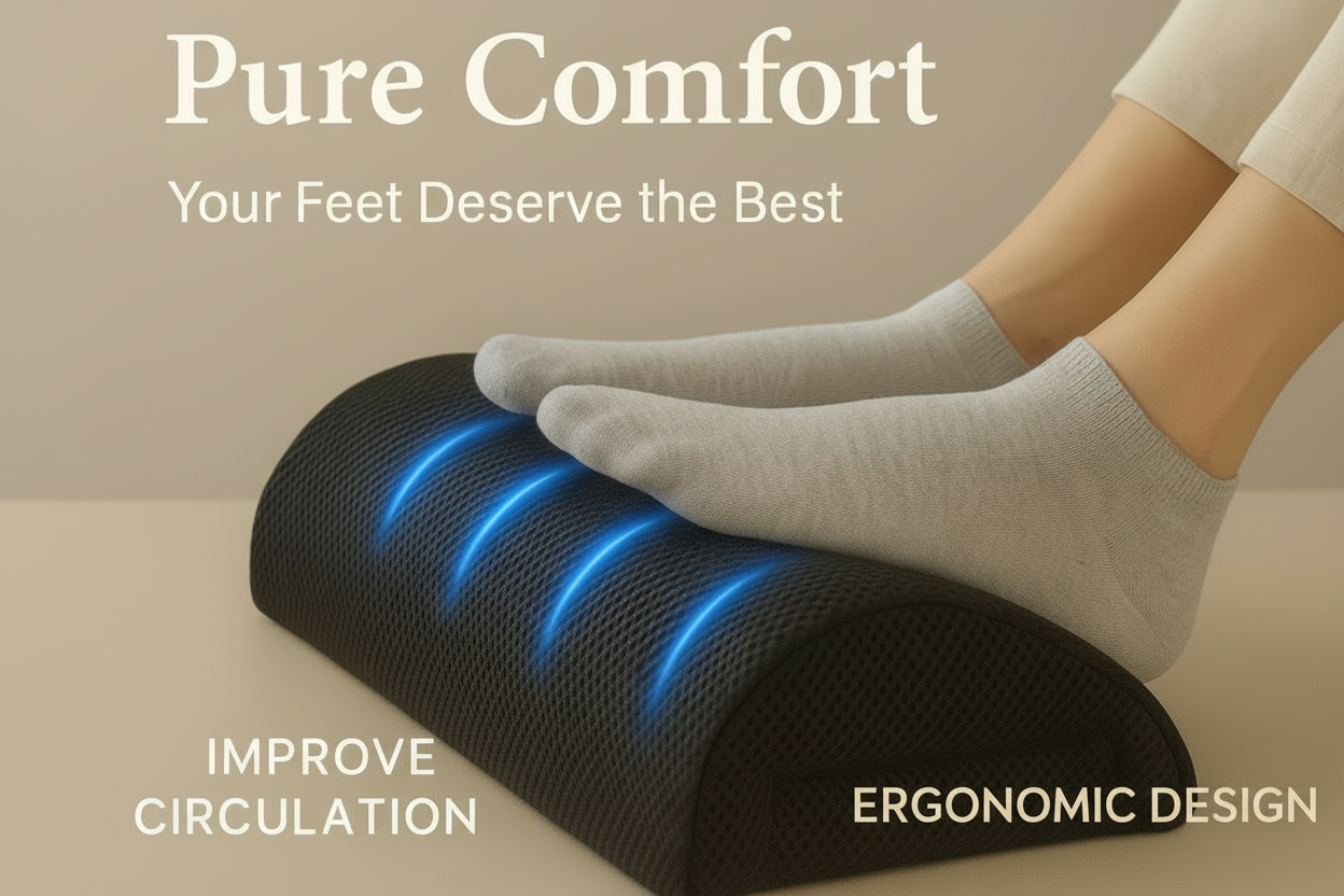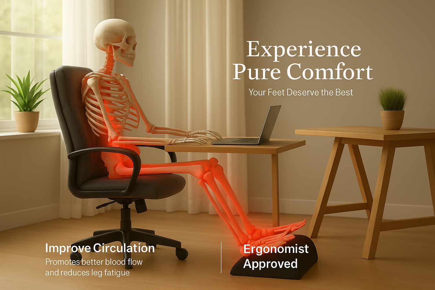 Our foot rest helps align the body from the feet up, reducing stress on the feet, knees, and hips while supporting a natural, upright spine posture. By improving leg positioning and circulation, it minimizes joint pressure and lower-back strain, making prolonged sitting more comfortable and healthier for your bones.